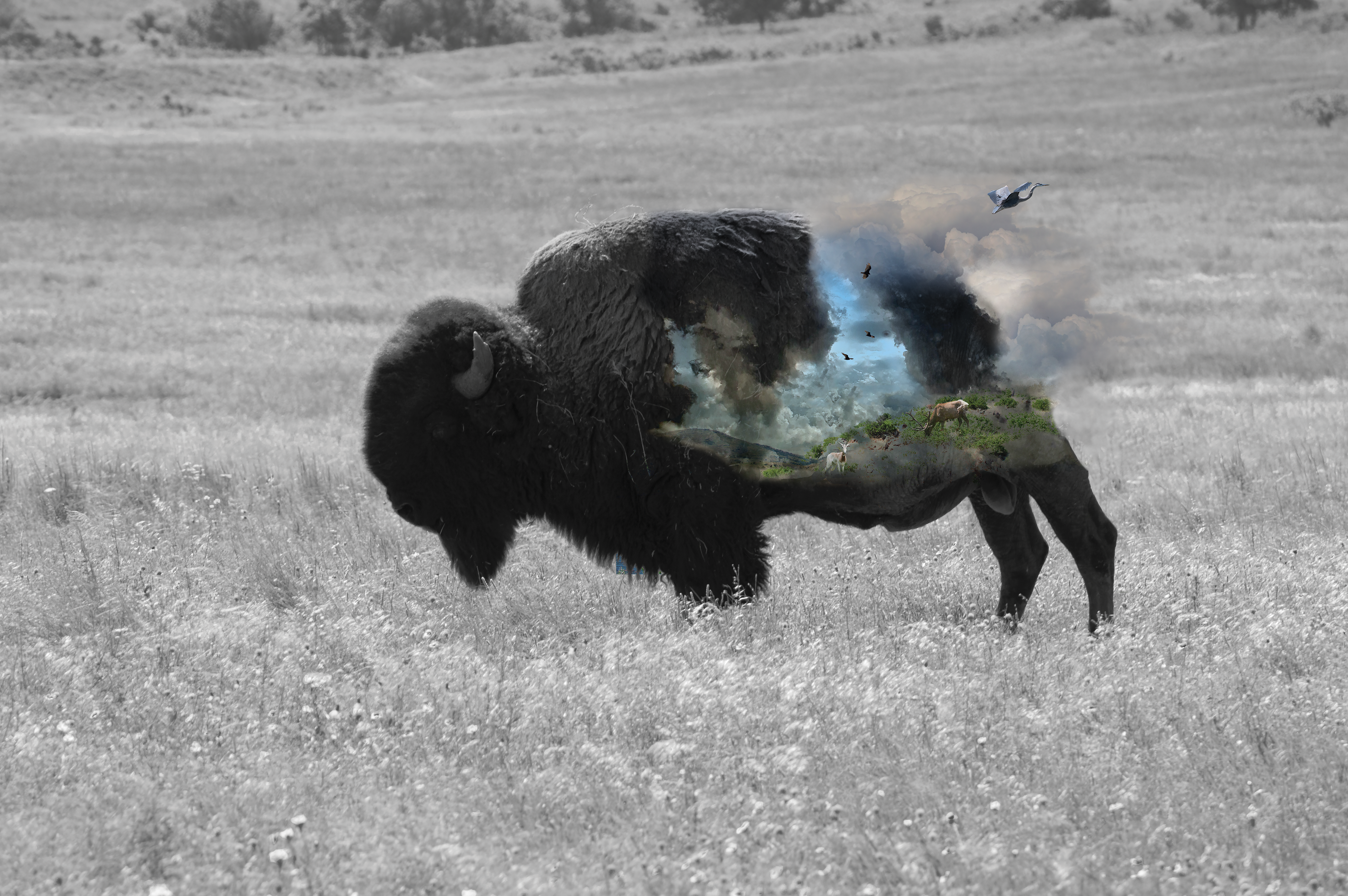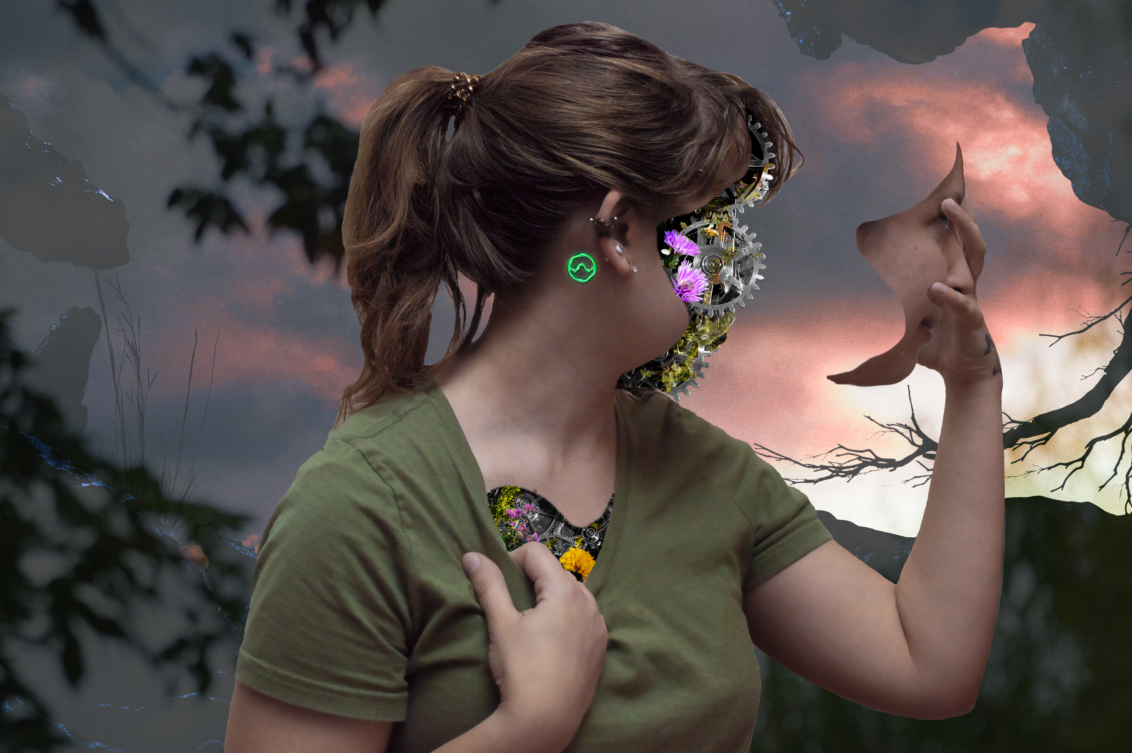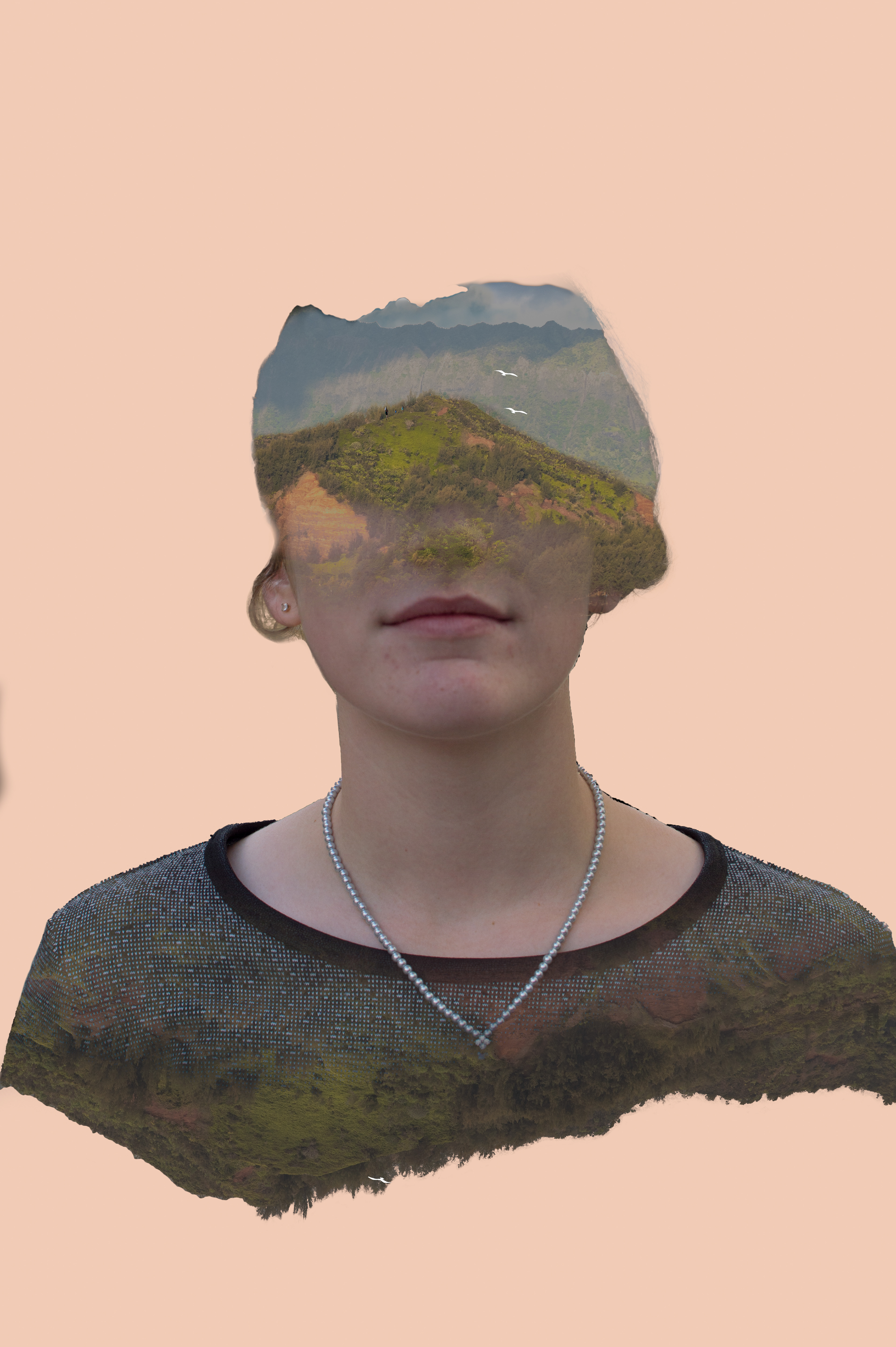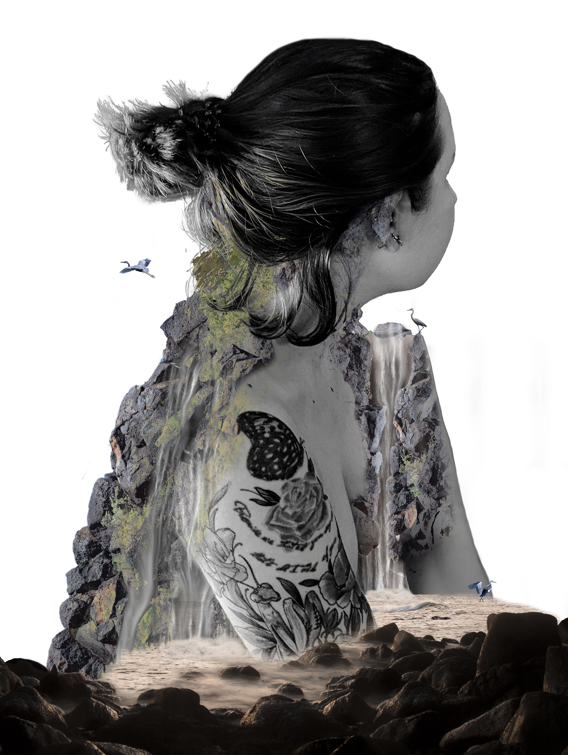 This work is a commentary about how the importance of women and nature are based on beauty. People travel to see parks deemed beautiful, but never pay attention to what's right outside their door. Women are told how important they are yet they are never treated as equals to men. Women and nature are just suppose to be this beautiful thing we put on display, but never taken seriously.
