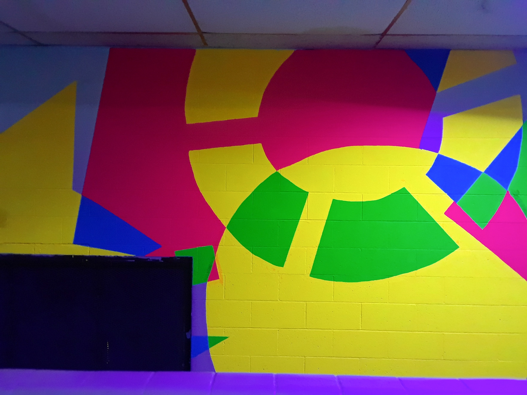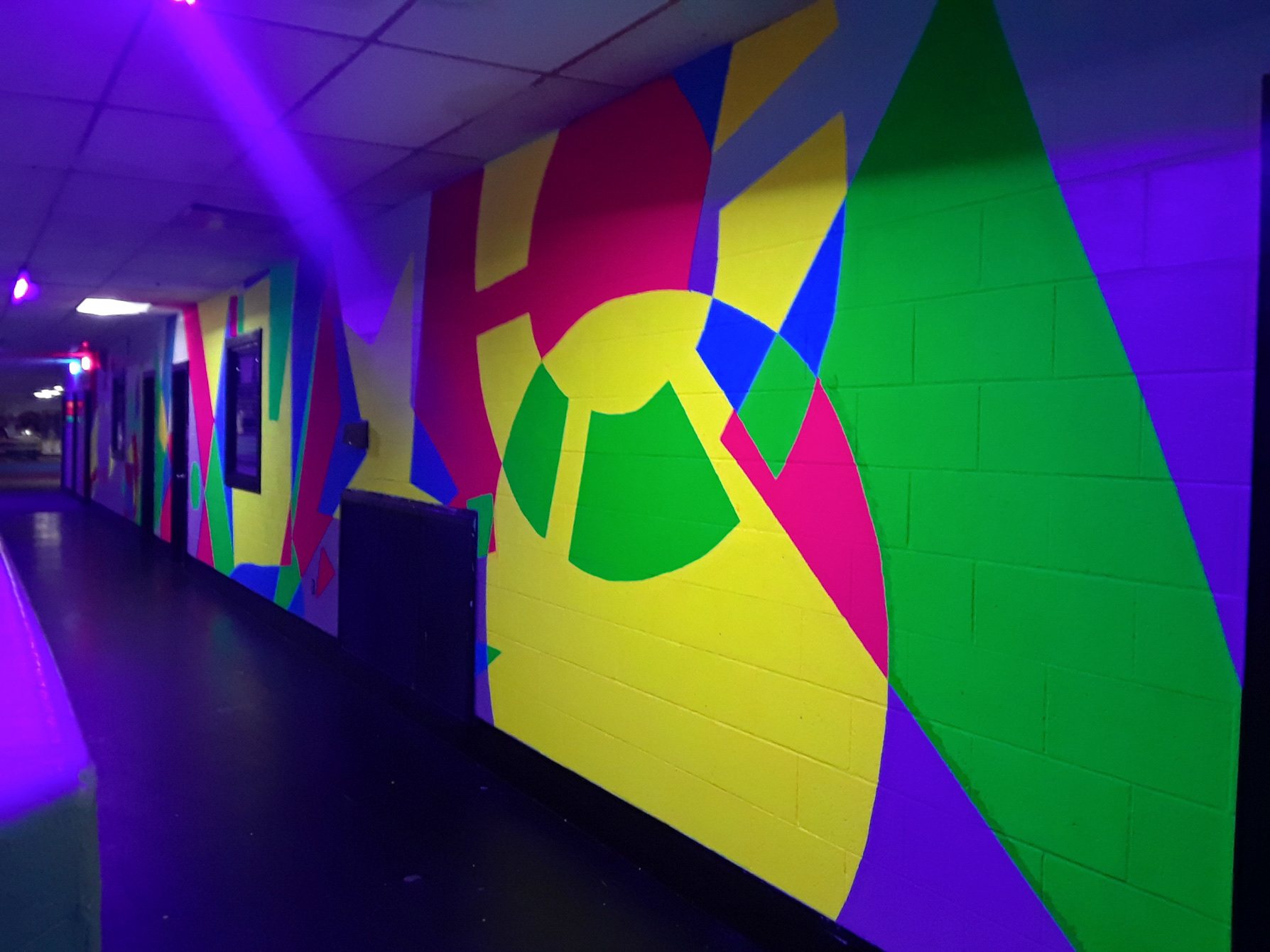 For the Glow Wall installation, the goal was to transform the space into a vibrant, eye-catching backdrop that would inspire skaters to pause and snap selfies. I designed a composition of overlapping shapes that created dynamic color shifts—similar to the way two paint colors blend to form a new hue—adding movement, depth, and playful energy to the wall.